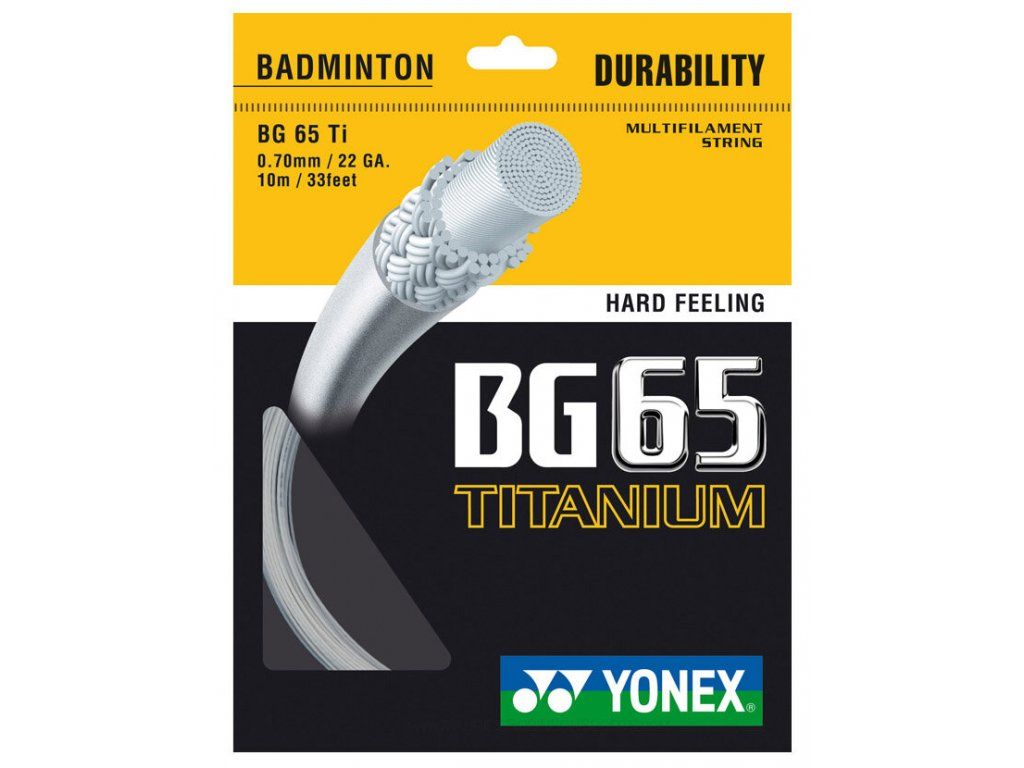 Tlumení nárazů a více síly pro agresivní hru. Mimořádně vysoká síla returnu spojená se schopností tlumení otřesů díky povrchu ze směsi titania. BG 65-Ti je perfektní výplet pro nejtvrdší vypletení a nejagresivnější závodní hru.
