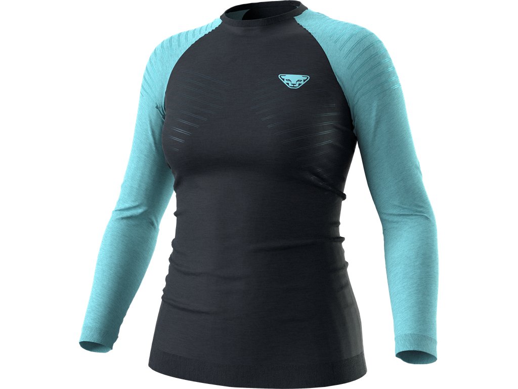 Dámské triko s dlouhým rukávem ze směsi merino vlny a lehkých prodyšných vláken Dryarn® slouží jako ideální základní vrstva. Inovativní směs vláken zajišťuje extrémně rychleschnoucí tkaninu s výbornou schopností termoregulace a odvádění potu. Přirozená schopnost merino vlny odolávat pachům z něj činí výbornou volbu pro aktivní sporty. Díky směsi merina a syntetických vláken je výsledná tkanina odolnější a pružnější než čisté merino, takže je jeho upnutý střih pohodlnější. Triko je kompletně bez švů, takže je na dotek příjemné a nikde nedře. V kombinaci s lehkými legínami třičtvrteční délky Dynafit získáte ideální hřejivou spodní vrstvu pro ski touring a jiné zimní sporty.