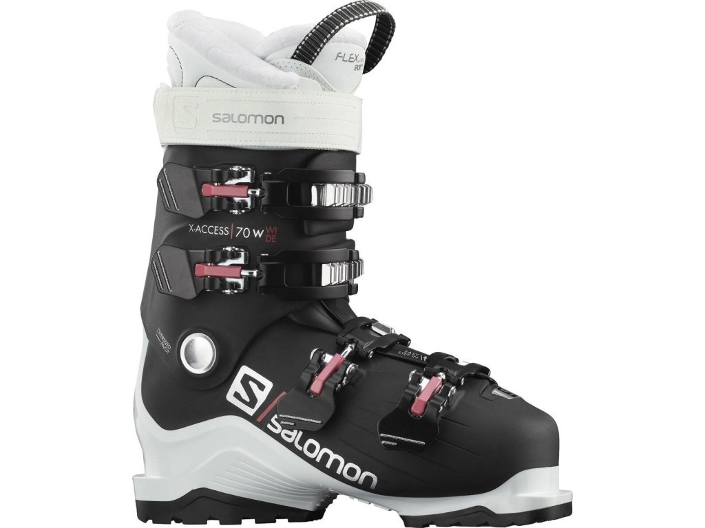 Salomon X Access 60 jsou dámské lyžáky určené pro rekreační lyžařky. Tento model představuje širší verzi lyžařské obuvi (šířka 104mm). Díky šiřší konstrukci jsou velice pohodlné a vydržíte s nimi bez problému celý den na svahu. Technologie Twinframe spojuje schopnost dobrého přenosu energie a optimálního držení nohy pro maximální výkon na svahu. Sjezdová obuv je opravdu lehká (pouhých 1490 gramů), což přispívá k vysokému komfortu. Té napomáhají technologie: Technologie Intuitive Shell umožňuje snadné nazouvání a vyzouvání. Technologie vnitřní botičky Flex Liner zvyšuje pohodlí. Na nohu botu dopnete pomocí 4 hliníkových přezek a 35 mm širokého pásku. O skvělý přenos energie při lyžování se stará 24 mm Oversized Pivot, který umožňuje náklon holeně směrem dolů ze svahu a pevné zapření nohy v botě. Bota je speciálně přizpůsobena ženskému tvaru chodidla.