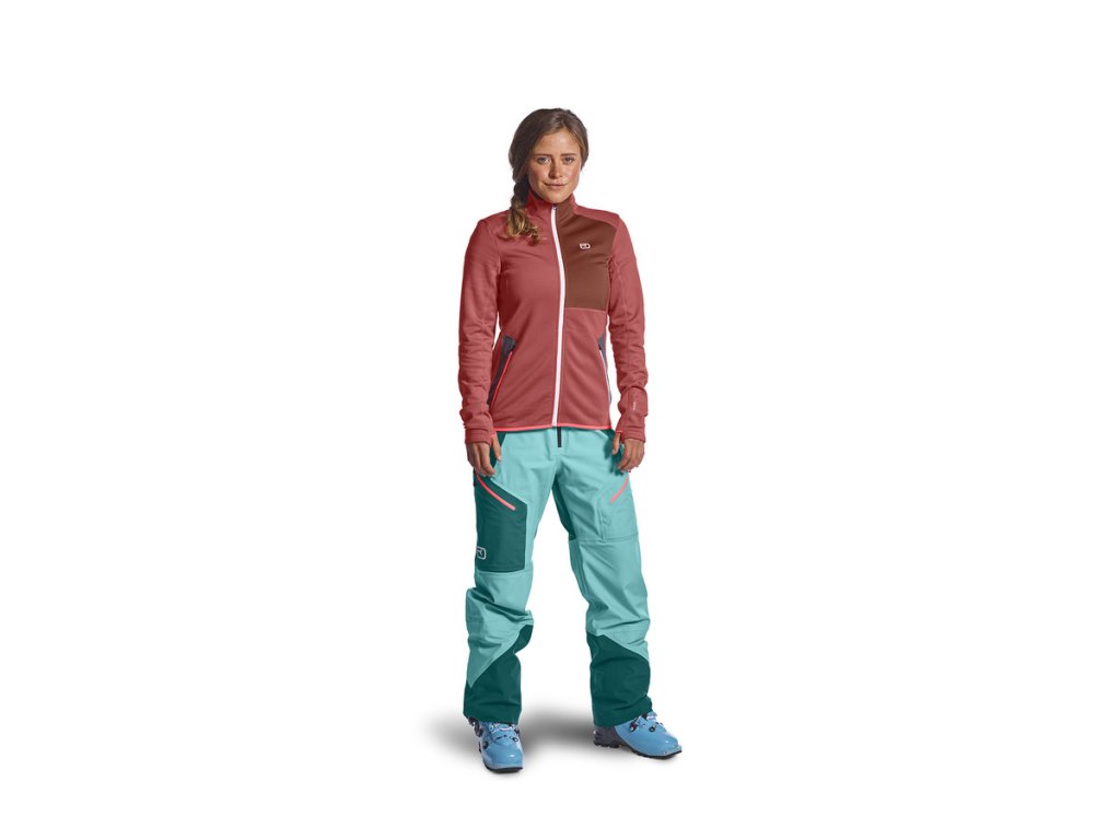 Dámská mikina ORTOVOX MERINO FLEECE JACKET W reprezentuje perfektní funkčnost a dokonalý komfort tvořený prvotřídními materiály. Skvělé vlastnosti Merino vlny zabezpečí, že budeš vždy v teple a suchu. Polyester na vnější straně zvyšuje odolnost proti oděru ale i chladnému větru. Mikina má zároveň více technických prvků, jako jsou velké boční kapsy nebo poutko na palec. Je vhodná jak pro extrémní sporty, tak pro každodenní nošení.