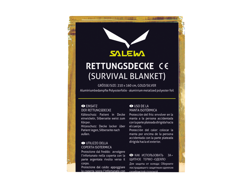 Hliníková záchranná deka Salewa Rescue Blanket jako nezbytná součást výbavy do hor.