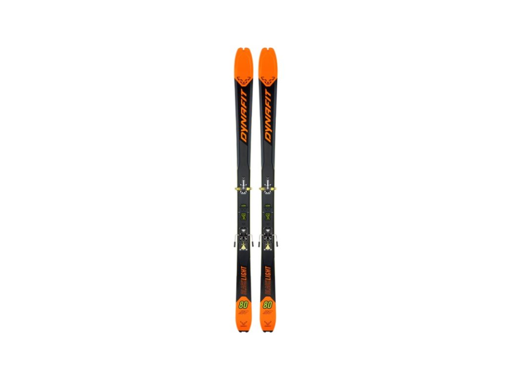 Nové lyže DYNAFIT Blacklight 80 váží sotva 1070 gramů (při 172 cm) a mají pod patou 80 mm. Název Blacklight kombinuje slovo „black“ pro svou barvu, která také představuje 100% karbonovou konstrukci, a slovo „light“, což znamená, že se jedná o velmi lehkou lyži s luminiscenčním charakterem. Tento model splňuje požadavky ambiciózních skialpinistů, kteří hledají lehkou a praktickou skialpinistickou lyži do jakéhokoli terénu a jakéhokoli sněhu. Blacklight 80 má vrchní vrstvu ze 100% karbonu. UD je zkratka pro jednosměrné („uni“) uspořádání karbonových vláken. Ve srovnání s klasickou karbonovou konstrukcí poskytuje tato konstrukce vyšší pevnost v tahu a větší trvanlivost při zachování nižší hustoty. Kromě toho jsou Blacklight 80 vybaveny 100% dřevěným jádrem Paulownia. Díky své 3D konstrukci mají lyže nižší celkovou hmotnost i při zachování extrémně stabilní ovladatelnosti. Rocker konstrukce a vykrojení jsou přizpůsobeny každé velikosti lyží, což je na trhu skialpinismu jedinečná vlastnost. Díky tomu je efektivní délka hrany rovnoměrně úměrná každé velikosti, což jí umožňuje fungovat nezávisle na velikosti. Aby byl zajištěn nejlepší možný přenos síly z lyžaře na lyže, jsou lyže konstruovány s plnou boční stěnou ABS. Skluznice má navíc speciální závodní zbroušení.