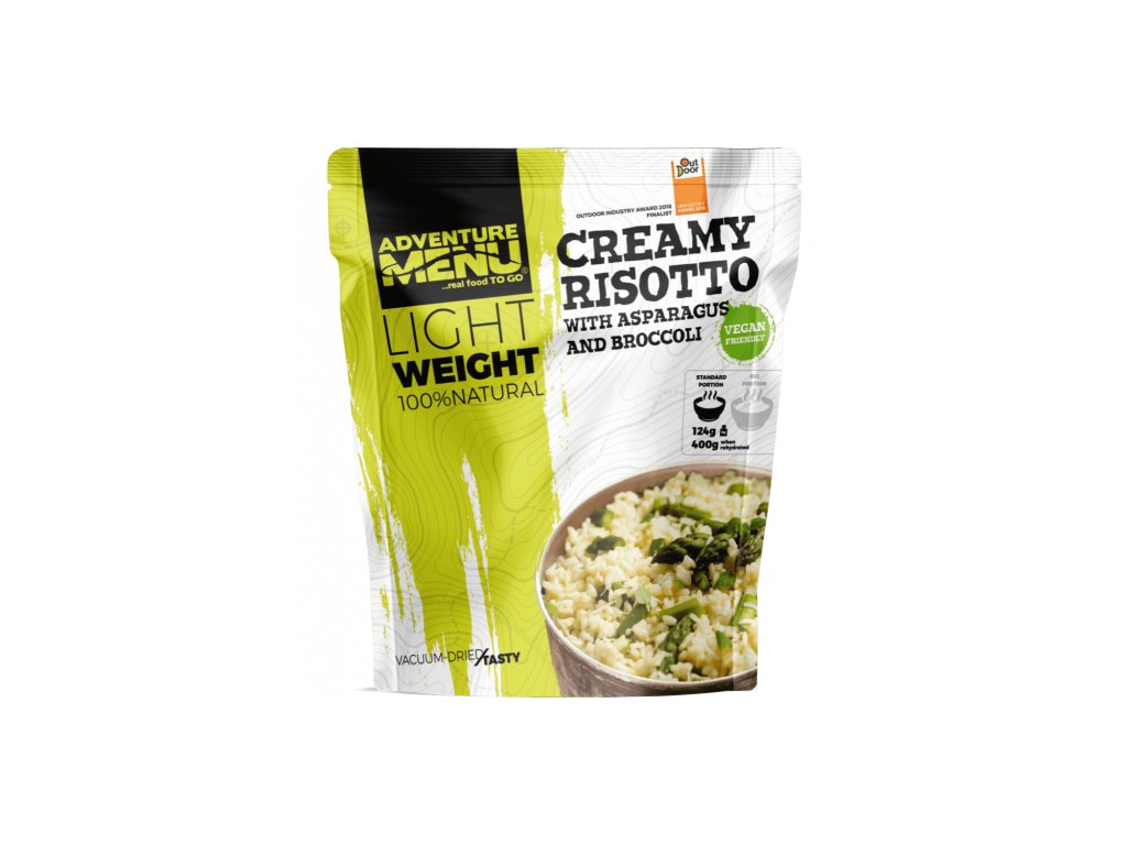 Rýže Arborio (40%), zeleninový vývar, chřest (12%), brokolice (12%), červená paprika, šalotka, bílé víno, kešu ořechy, olivový olej, lahůdkové droždí (sušené kvasnice, sladový extrakt), česnek sušený, sůl, pepř.