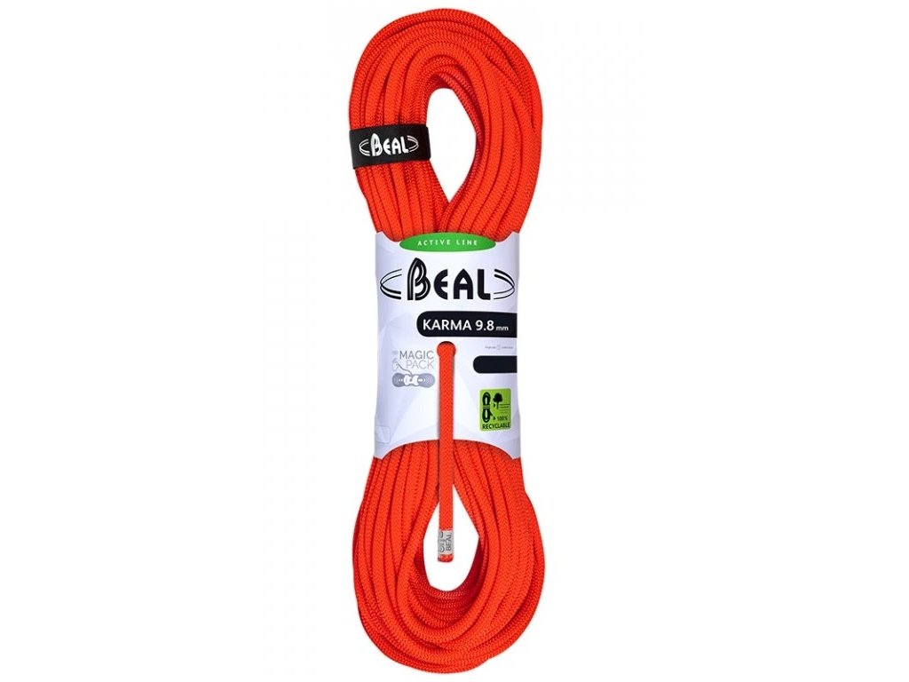 Lano s průměrem 9,8mm ideální pro začínající i velmi zkušené lezce. Certifikaci má pouze jako jednoduché lano. Tato tloušťka je výborným kompromisem mezi objemem lana a jeho dobrou manipulovatelností. Lano Karma je z řady Active Line, vhodné pro sportovní lezení. Toto základní lano se používá i při trénování těžkých cest, kde lano dostává zabrat a životnost je pak přibližně stejná jako u mnohem dražšího lana s impregnací.