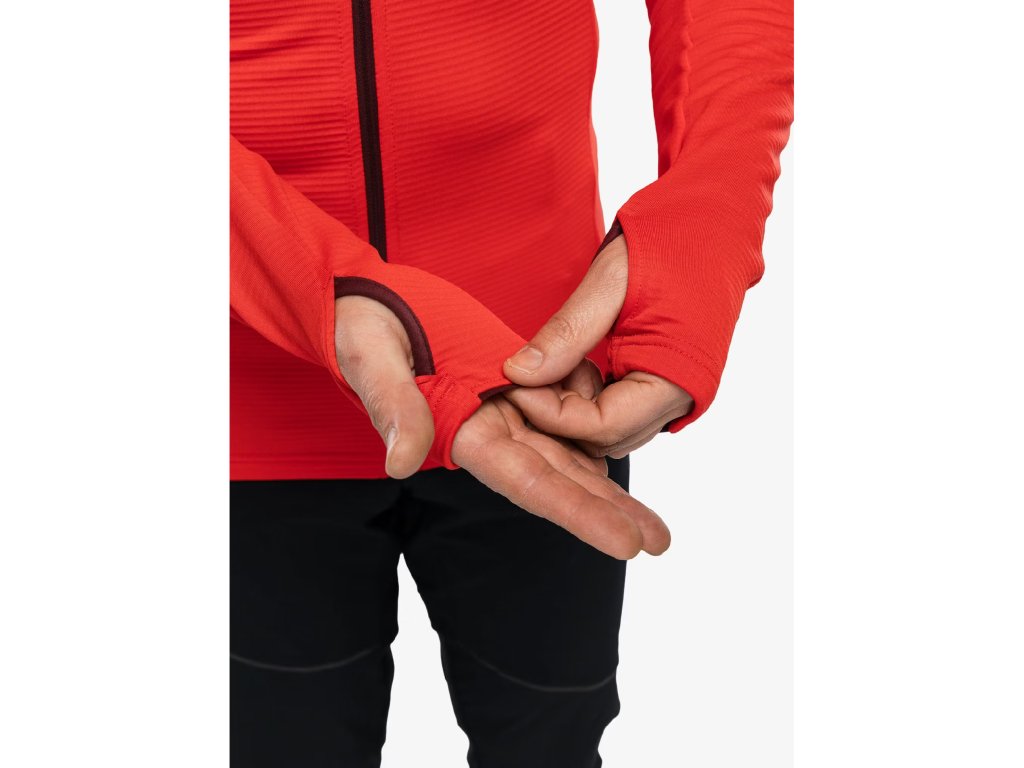 Mikina je ušitá z fleecu TechStretch™ Light. Je elastický a příjemný. Díky své mřížkované struktuře udržuje velké množství vzduchu. To zvyšuje jeho výhřevnost. V případě silného navlhnutí může mikina pořád optimálně termoregulovat. Její mikroklima oceníte pod hardshellovou bundou. Zároveň tato struktura zvyšuje vnitřní povrch. Mikina tak může lépe sát vlhkost od vaší první vrstvy a rychleji schnout. Díky ošetření trvalou antibakteriální úpravou Polygiene® se nemusíte obávat nepříjemných pachů po propocení. Mikinu stačí vyvětrat a můžete ji nosit bez obav dál i na dálkových trecích. Regular střih díky vysoké pružnosti materiálu dobře padne různým typům postav a je velmi slušivý. Límec chrání náchylný krk. Rukávy jsou doplněné o otvory na palce. Spodní lem mikiny je elastický. Hrudní kapsa je lehce dostupná i pod svrchní bundou.