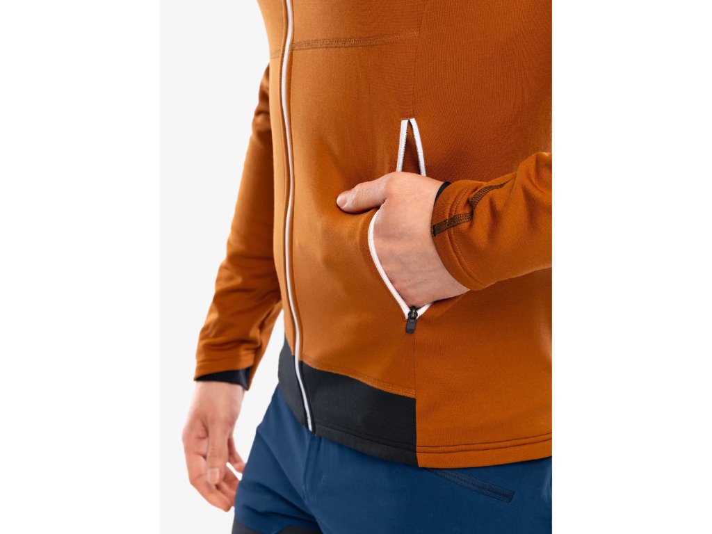 Mikina Ortovox Fleece Light Hoody má přiléhavý střih Athletic Fit. Model je vybaven celorozepínacím hlavním zipem a dvěma bočními kapsami na zip. Integrovaná kapuce se dobře vejde pod přilbu. Pánská mikina má v manžetách otvory na palce, které zvyšují úroveň přizpůsobení. Materiálovému složení dominuje izolační a rychleschnoucí polyester. Merino vlna se stará o regulaci tělesné teploty a poskytuje antibakteriální vlastnosti. Elastan se stará o strečové vlastnosti mikiny.