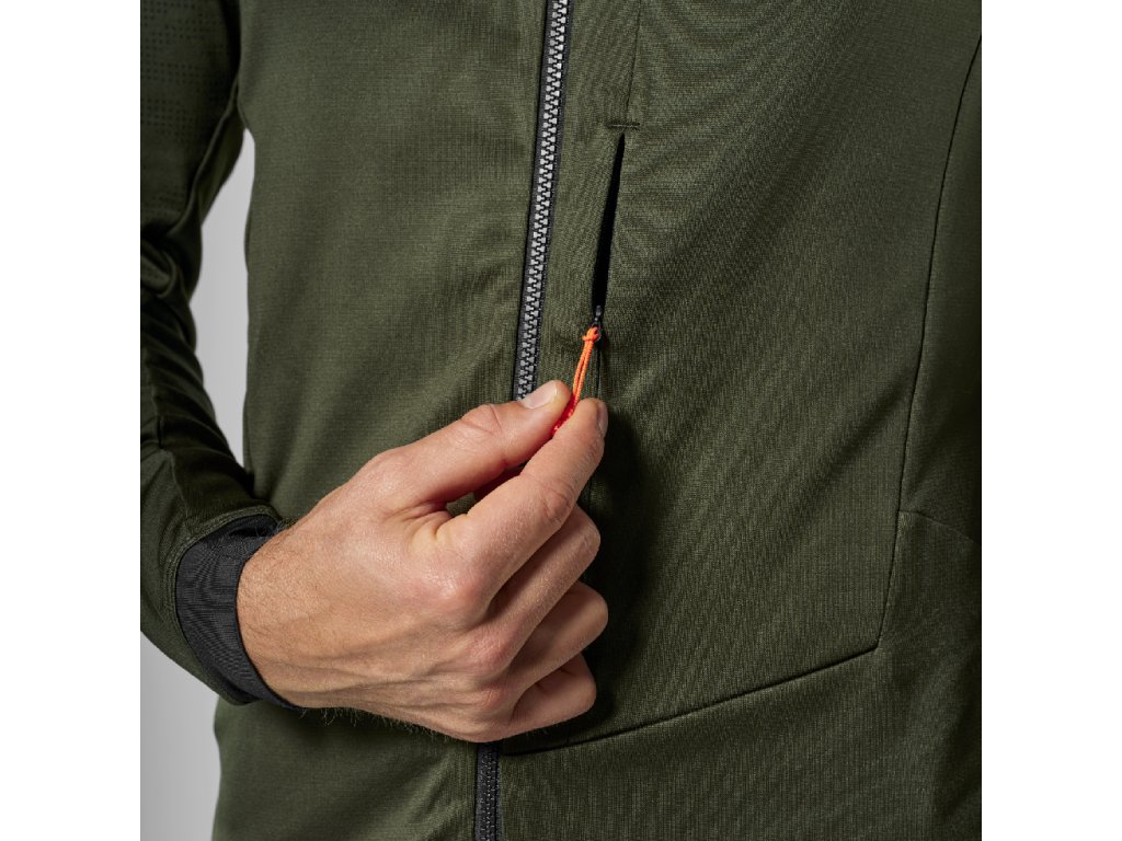 - Praktické detaily: skrytá přední kapsa s neviditelným zipem, elastické manžety a spodní lem pro lepší těsnost a komfort.