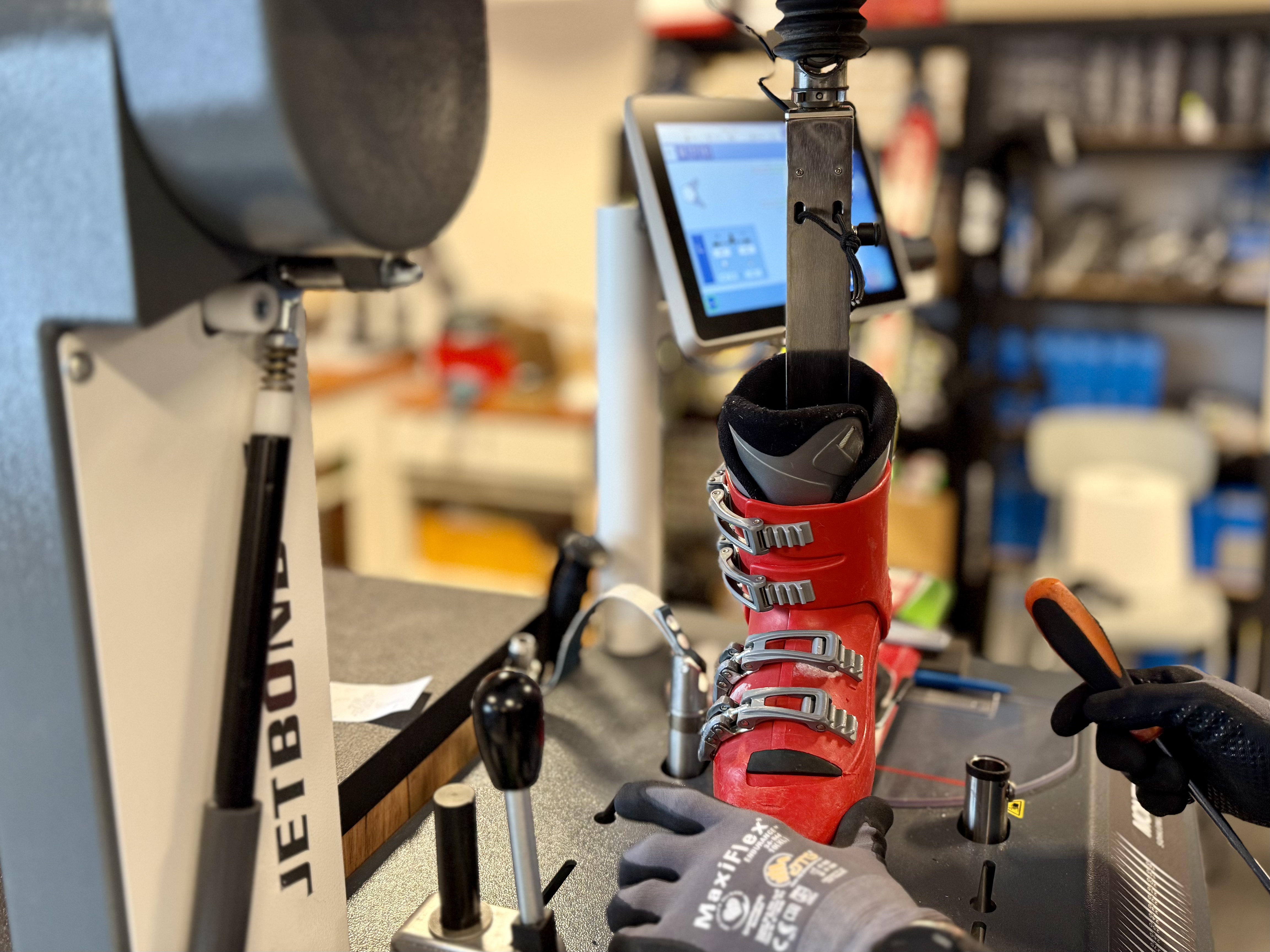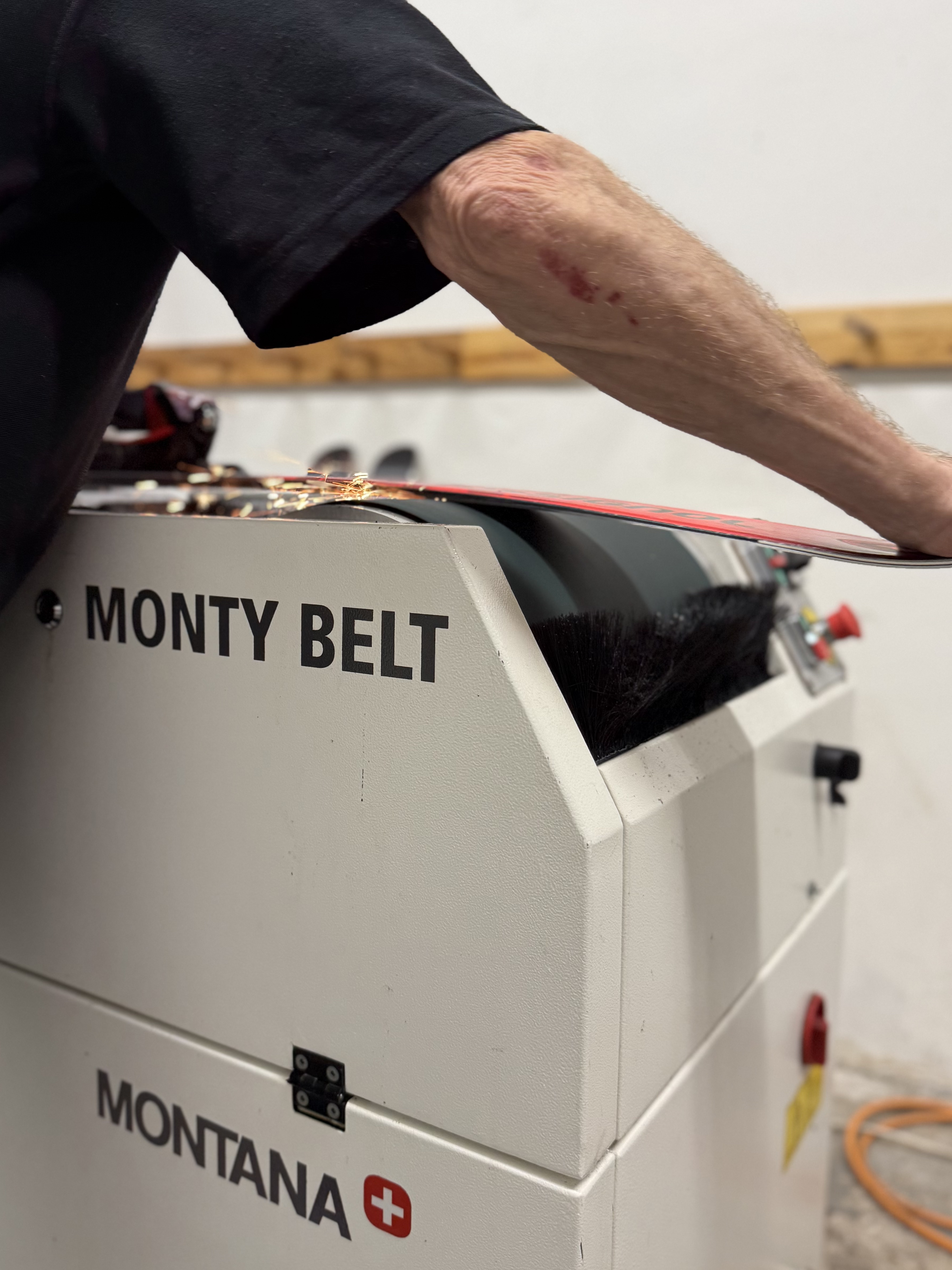 Používáme moderní technologie – například Race Waxer pro bezkontaktní voskování nebo MONTANA COMPACT EDGE pro přesné úhlování hran. Naše služby zahrnují vše od drobného broušení a mazání až po závodní tuning hran a kompletní montáže vázání.