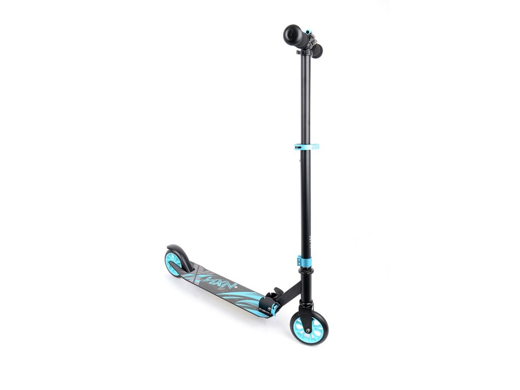 Dětská skládací koloběžka se zadní blatníkovou brzdou. Koloběžka je lehká, snadno přenosná. Snížená úroveň stupátka nad povrchem. Hlavové složení se závitem. Řídítka jsou opatřena objímkou pro zmírnění otřesů.
